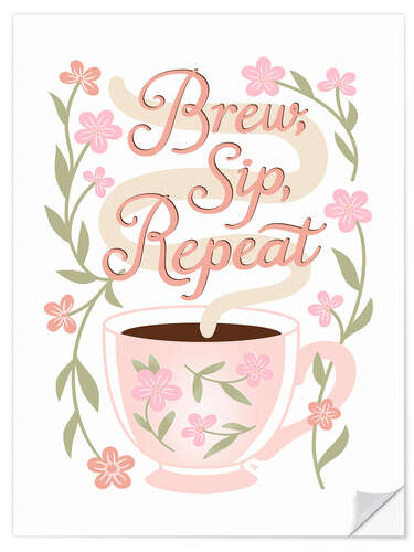 Posterlounge   Tableaux   Proverbes et citations   Martina   Sticker mural Brew, Sip, Repeat